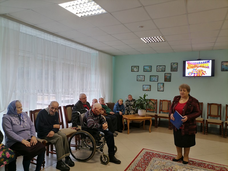 В «Николаевщинском доме-интернате для престарелых и инвалидов» 20.10.2023г. прошла праздничная программа, посвящённая Дню Отца. Получатели социальных услуг делились воспоминаниями о своих отцах, их родительском авторитете и роли в жизни.