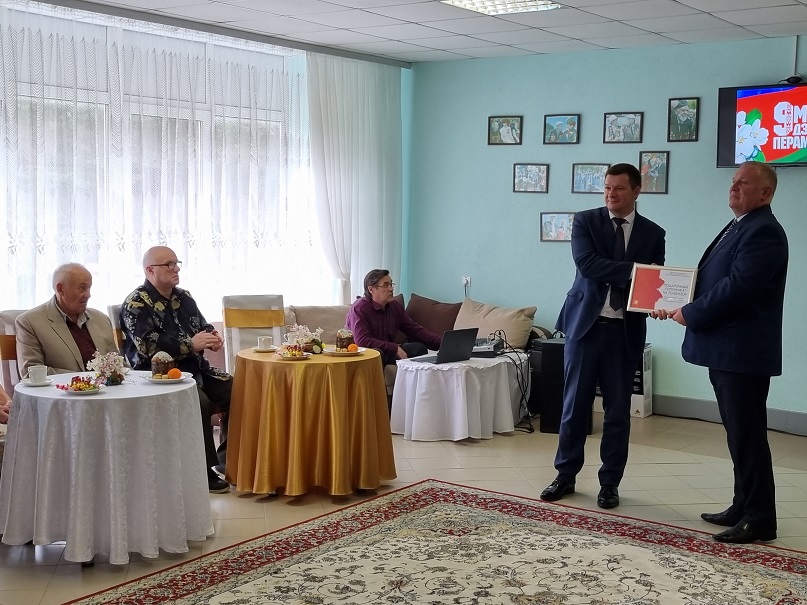 В рамках патриотической акции «Славим поколение Победы» в ГУ «Николаевщинский дом-интернат для престарелых и инвалидов» прошла поздравительная акция с участием председателя Минской областной организации Белорусского Профсоюза госучреждений Филимонова Владимира Николаевича, начальника управления социальных учреждений комитета по труду, занятости и социальной защите Минского облисполкома Симоновой Инги Александровны, архивиста отдела использования и публикации документов Учреждения «Государственный архив Минской области» Миронова Антона Вадимовича, начальника управления по труду, занятости и социальной защите Столбцовского райисполкома Новицкой Ольги Александровны.