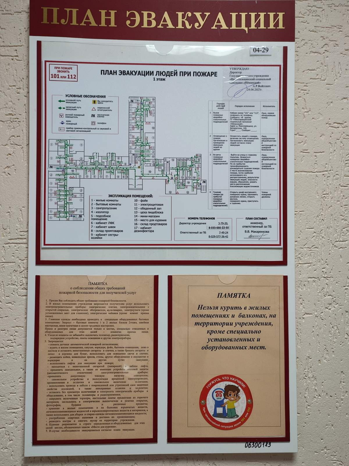 25.09.2025В рамках ЕДИНОГО ДНЯ БЕЗОПАСНОСТИ 25 сентября 2025 года в ГУ «Николаевщинский социальный пансионат «Нёманский» проведена практическая отработка плана эвакуации людей при пожаре, действия в условиях внештатных ситуаций, оказание первой помощи, размещены информационные материалы.